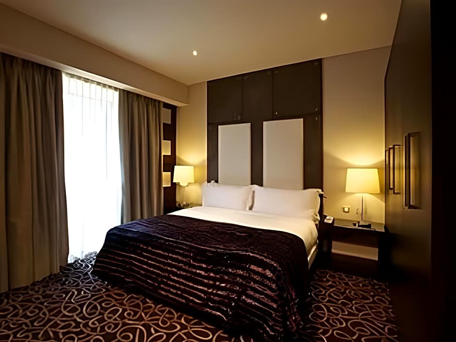 This spacious suite consists of 1 living room, 1 separate bedroom and 1 bathroom with a walk-in shower and free toiletries. This suite is air-conditioned and features a seating area with a flat-screen TV, a mini-bar, a tea and coffee maker, a wardrobe, as well as a safe deposit box. The unit offers 1 bed.